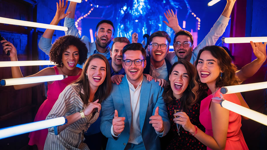 Ouvintes Fiéis Celebram com Selfie em Grupo